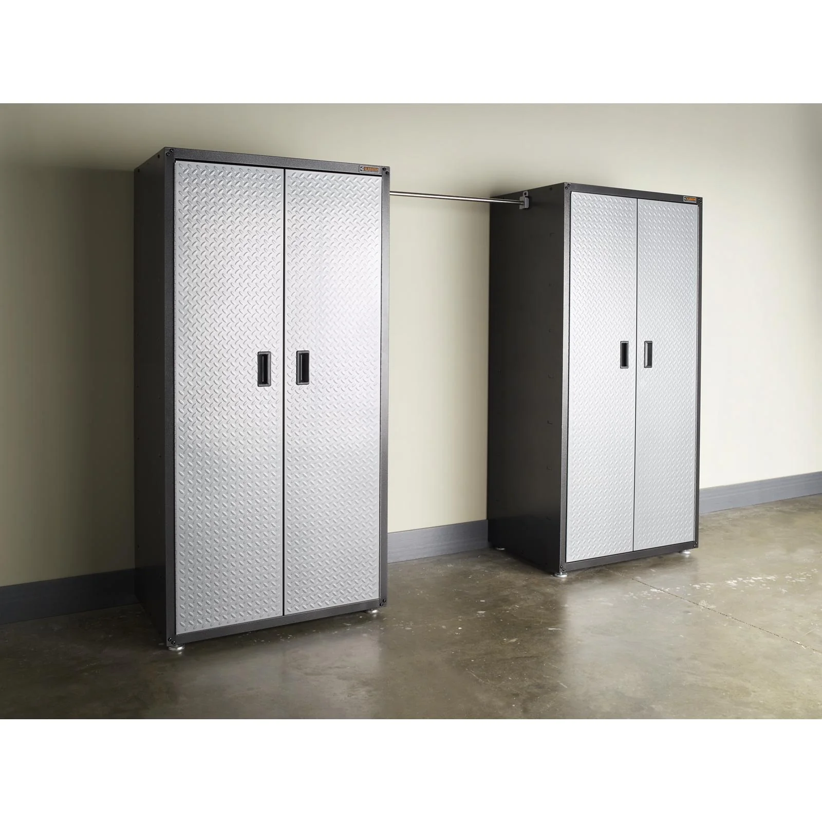 The GearRod Accessory adds hanging storage to your Gladiator® Jumbo GearBox to provide more options for customizing your space. Holding up to 90 lbs, the GearRod is ideal for bulky jackets, motorcycle gear, ski wear, camping equipment and other seasonal items. You can choose to attach the GearRod inside the top of the cabinet or below a shelf and install up to two hanging rods per GearBox.